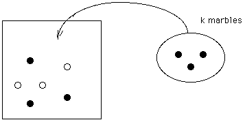 Urn Analogy: Each marble in the urn represents an association from the stimulus to a response. Perhaps each marble represents a neural link. Each marble is either White (for wrong) or Red (for right), and the marbles are assumed to be randomly mixed between trials. On each trial, a marble is chosen at random, as though the subject selects one association on each trial.